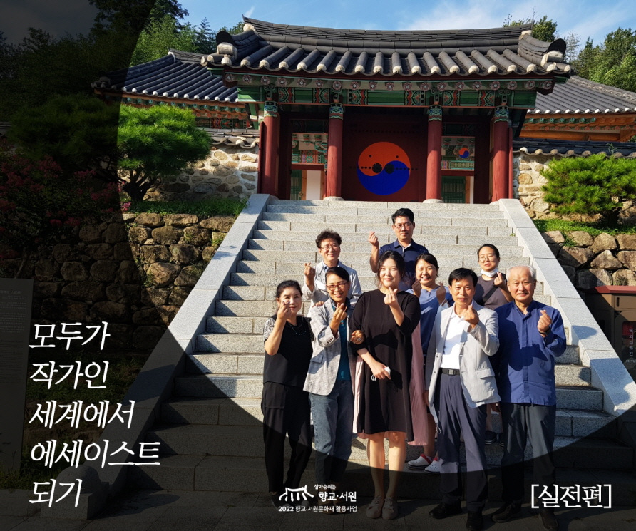 8월 한달간, 화순향교에서 최.초.로 진행된 북클래스가 훈훈한 분위기 속에서 마무리되었습니다! 이수진 소설가와 함께 에세이 쓰기의 이론부터 시작해 실기 수업까지, 열정 넘치는 수업이 진행되었어요. 처음엔 어렵게 느껴졌지만 이수진 소설가의 꼼꼼, 밀착 1:1 피드백으로 모두 자신만의 멋진 글을 완성시킬 수 있었다는 후문..!! 향교에서 쓰는 에세이라니, 왠지 더욱 멋진데요. 완성된 글들이 모여 만들어질 에세이북이 기대됩니다😊📖