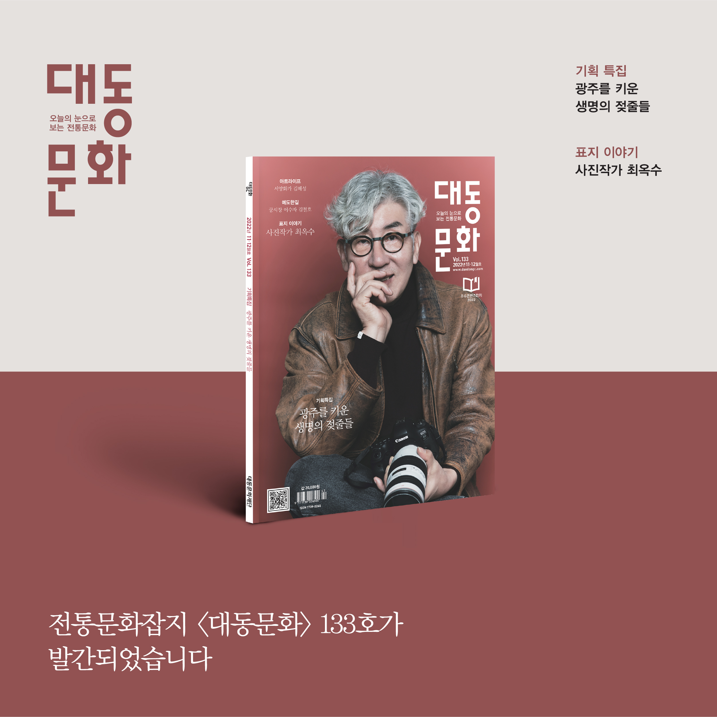 <대동문화> 133호에서는 광주를 키운 젖줄들 을 돌아보고 물의 생명력과 소중함을 돌이켜봅니다. 표지이야기에서는 대동문화의 표지사진을 책임지던 최옥수 사진작가 의 모습과 사진 인생 이야기를 담았습니다.