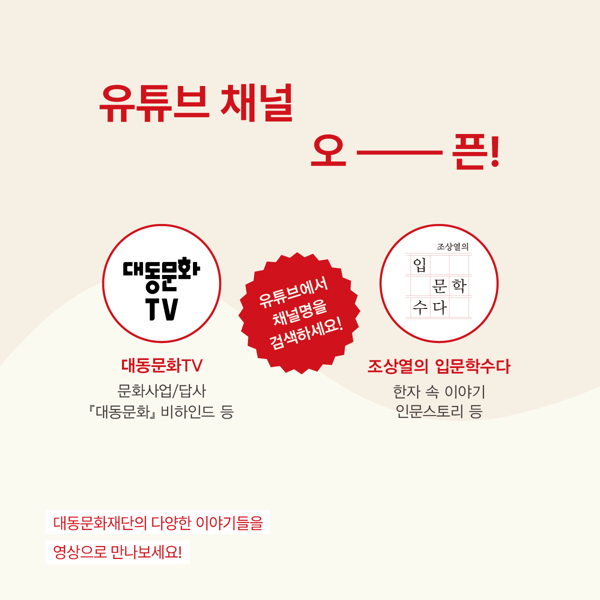 영상으로 만나는 대동문화 유튜브 채널 오픈!