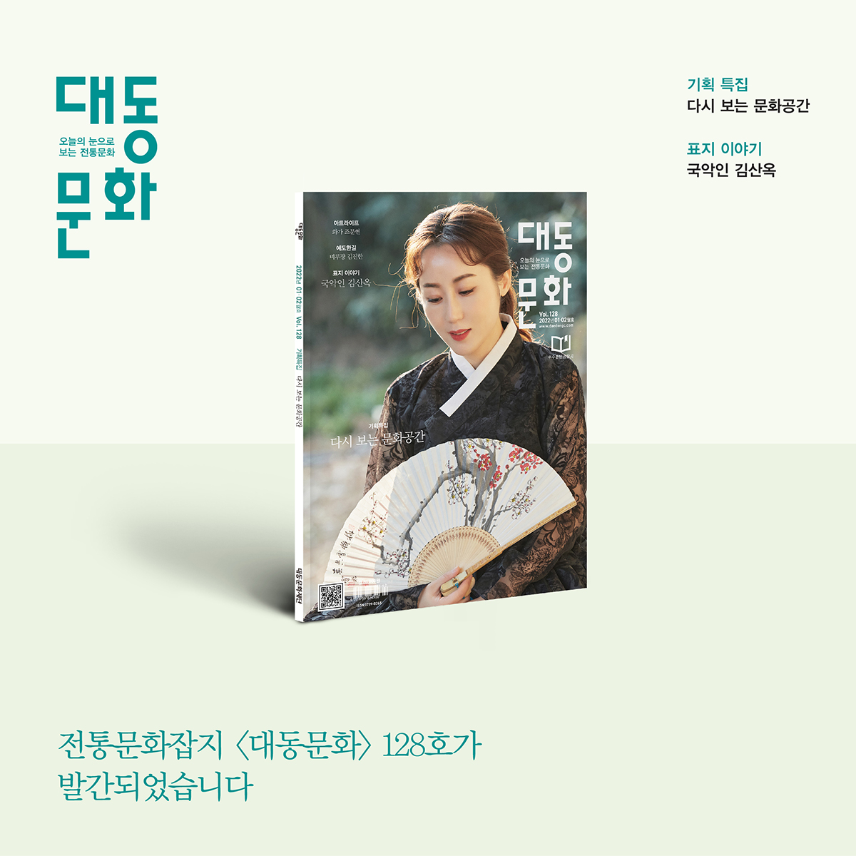 대동문화 128호가 발행되었습니다. 표지이야기 국악인 김산옥, 기획특집 다시 보는 문화공간, 아트라이프 화가 조문현, 예도한길 벼루장 김진한, 포토에세이 정현목 사진 작가 등 다양한 이야기를 신년호에서 만나보실 수 있습니다. |