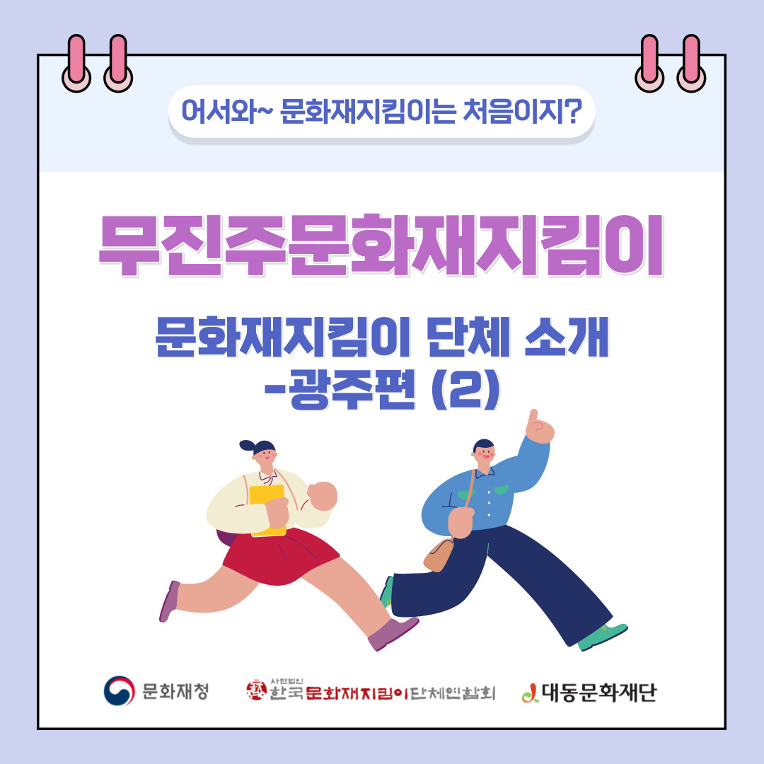 어서와~문화재지킴이는 처음이지? 카드뉴스 시리즈의 마지막! 광주에서 활동하는 단체인 '무진주문화재지킴이'를 카드뉴스로 여러분께 소개드립니다!