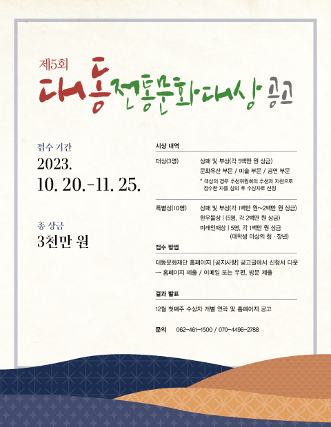 [제5회 대동전통문화대상 안내(10월 20일부터 접수)] |