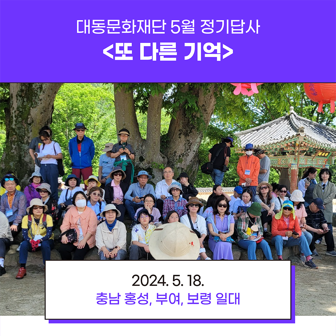 지난 5월 18일, 대동문화 5월 정기답사를 충남으로 다녀왔습니다. 5.18민주화운동기념일인 이날, 참여객들과 묵념으로 시작한 이번 답사 여행에서는 뜻밖의 우연이 펼쳐졌는데요. 홍성 답사 중 유홍준 교수님을 게릴라 해설을 듣게 되었답니다! 여행을 이끈 조상열 대표님의 답사 후기를 전합니다🎁